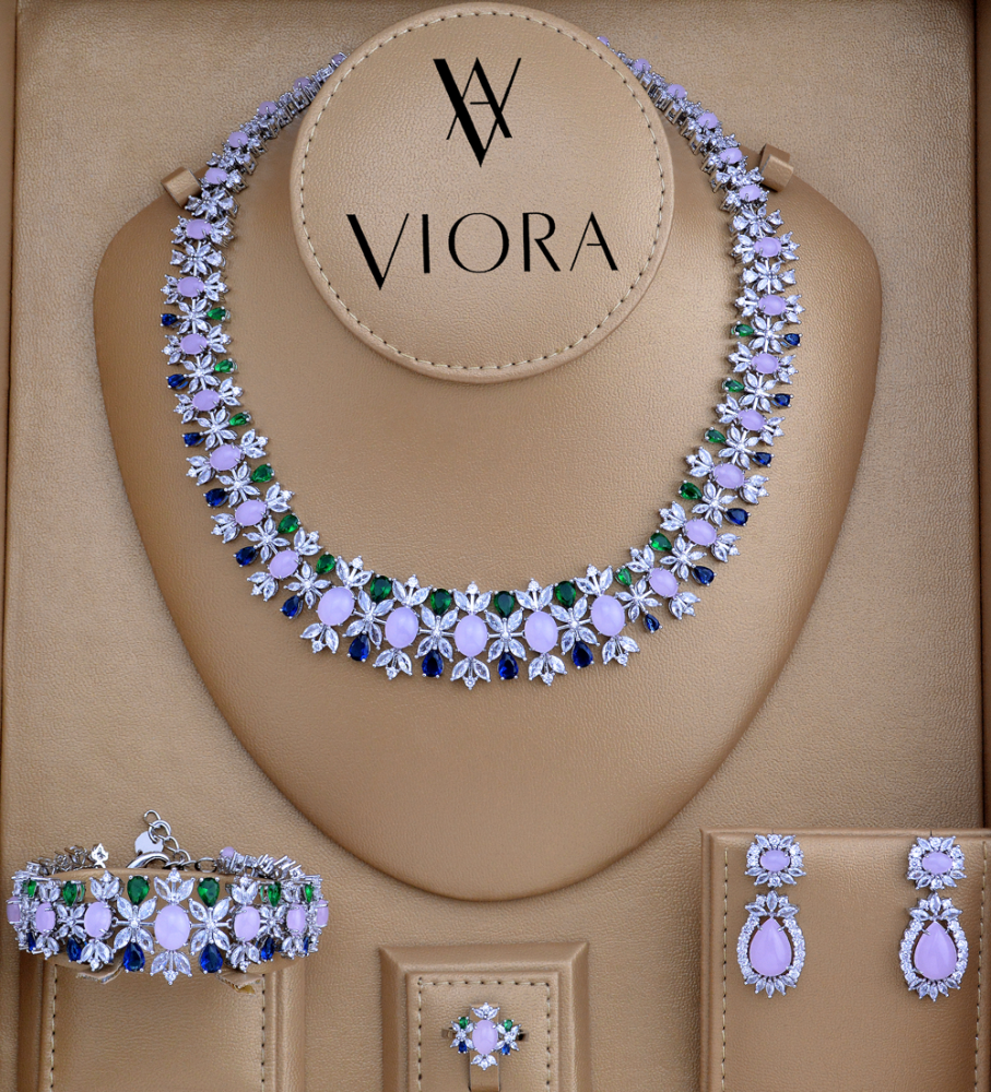 - طقم زركون تصميم ألماس مرصع بالاحجار الزركونية