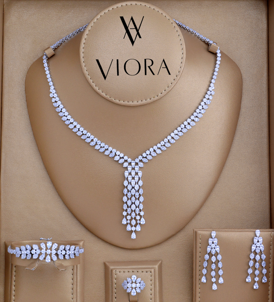 - طقم زركون تصميم ألماس مرصع بالاحجار الزركونية