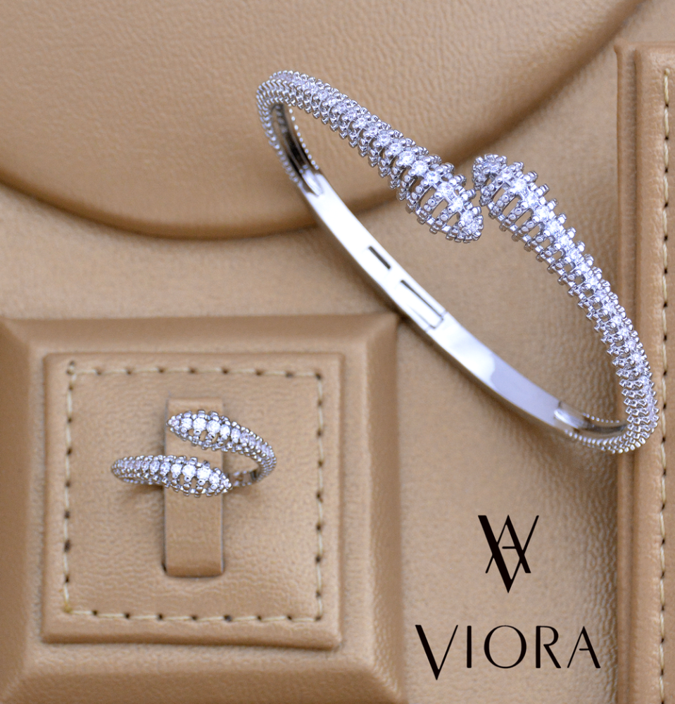 - طقم اسوارة مع خاتم تصميم ألماس مرصعة بالزركون