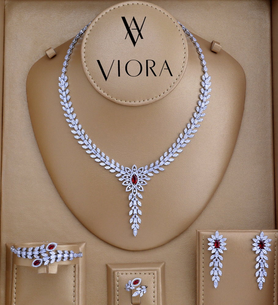 - طقم زركون تصميم ألماس مرصع بالاحجار الزركونية