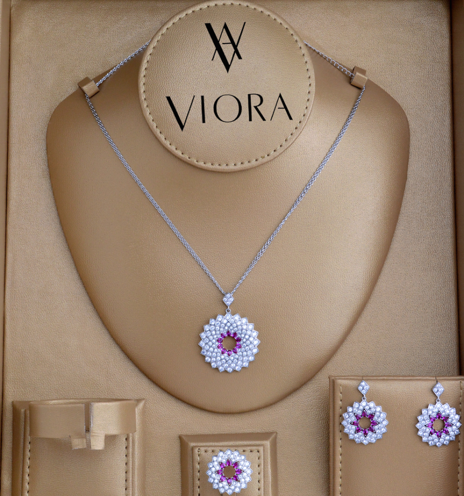 - طقم زركون ناعم تصميم ألماس مرصع بالزركون