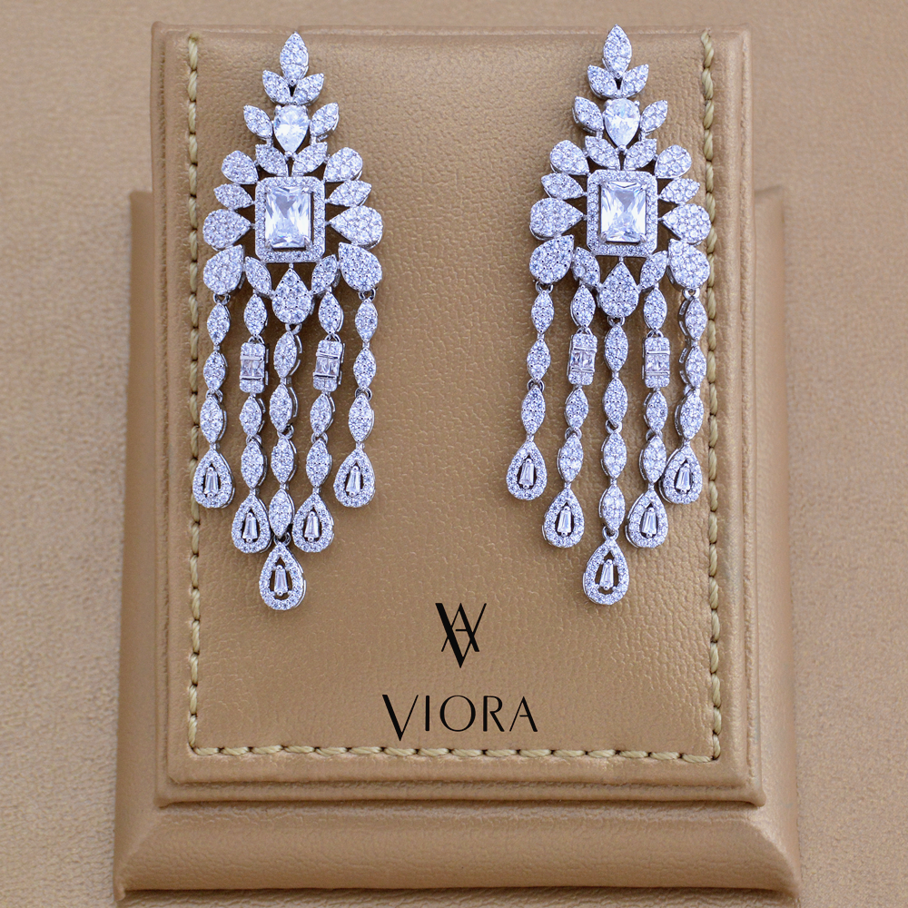 - أقراط فاخرة تصميم ألماس مرصعة بالزركون