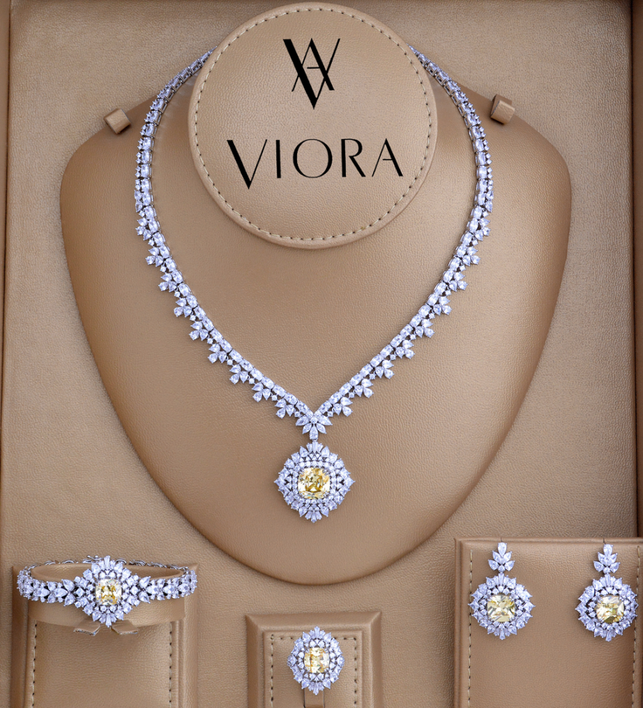 • طقم زركون تصميم ألماس مرصع بالاحجار الزركونية