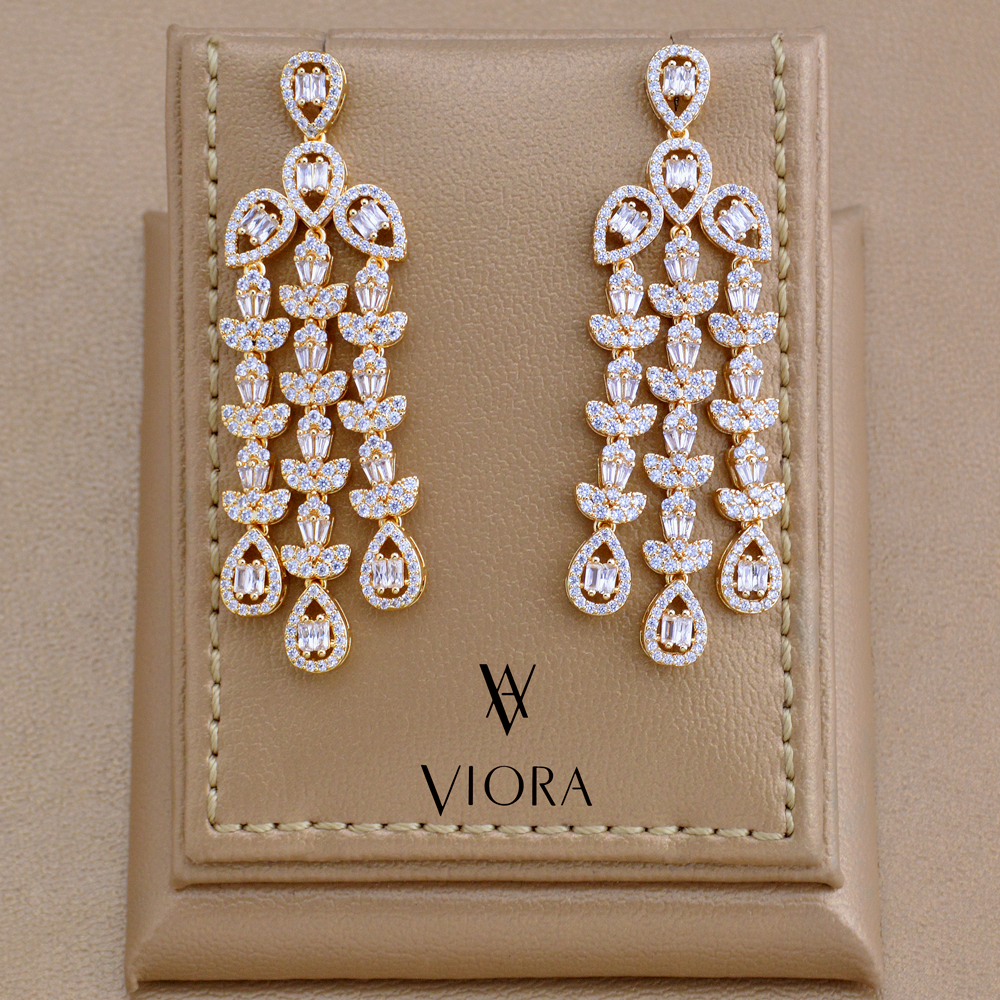 - أقراط فاخرة تصميم ألماس مرصعة بالزركون