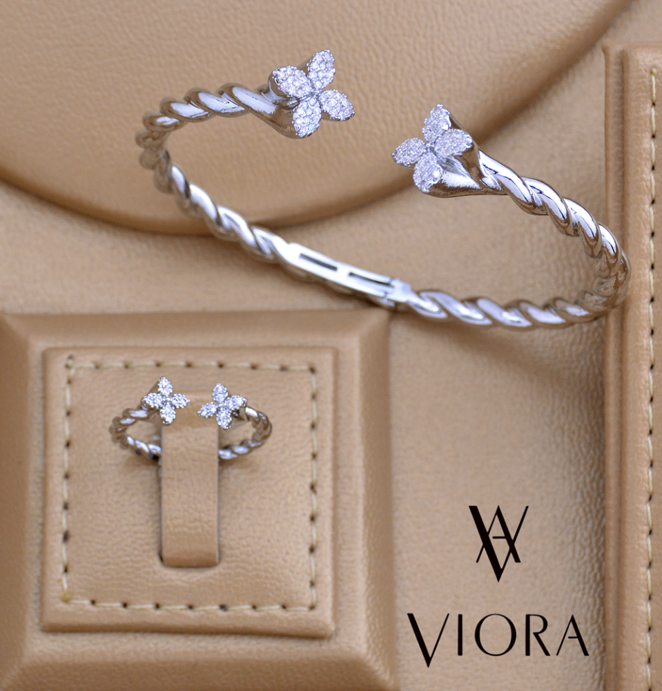 - طقم اسوارة مع خاتم تصميم ألماس مرصعة بالزركون