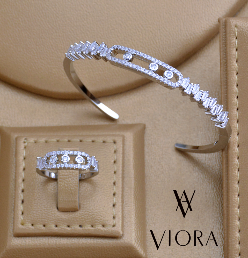 - طقم اسوارة مع خاتم تصميم ألماس مرصعة بالزركون