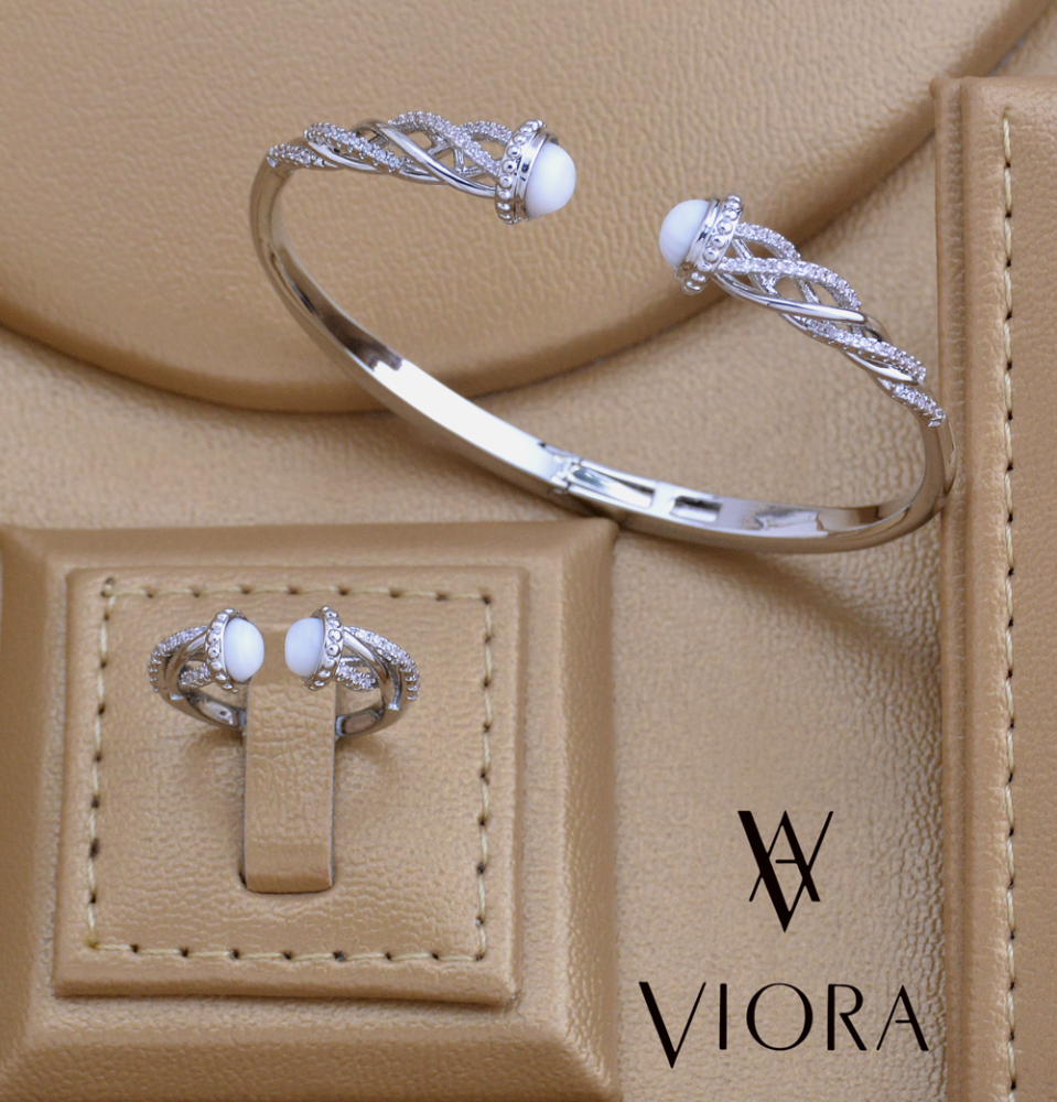 - طقم اسوارة مع خاتم تصميم ألماس مرصعة بالزركون