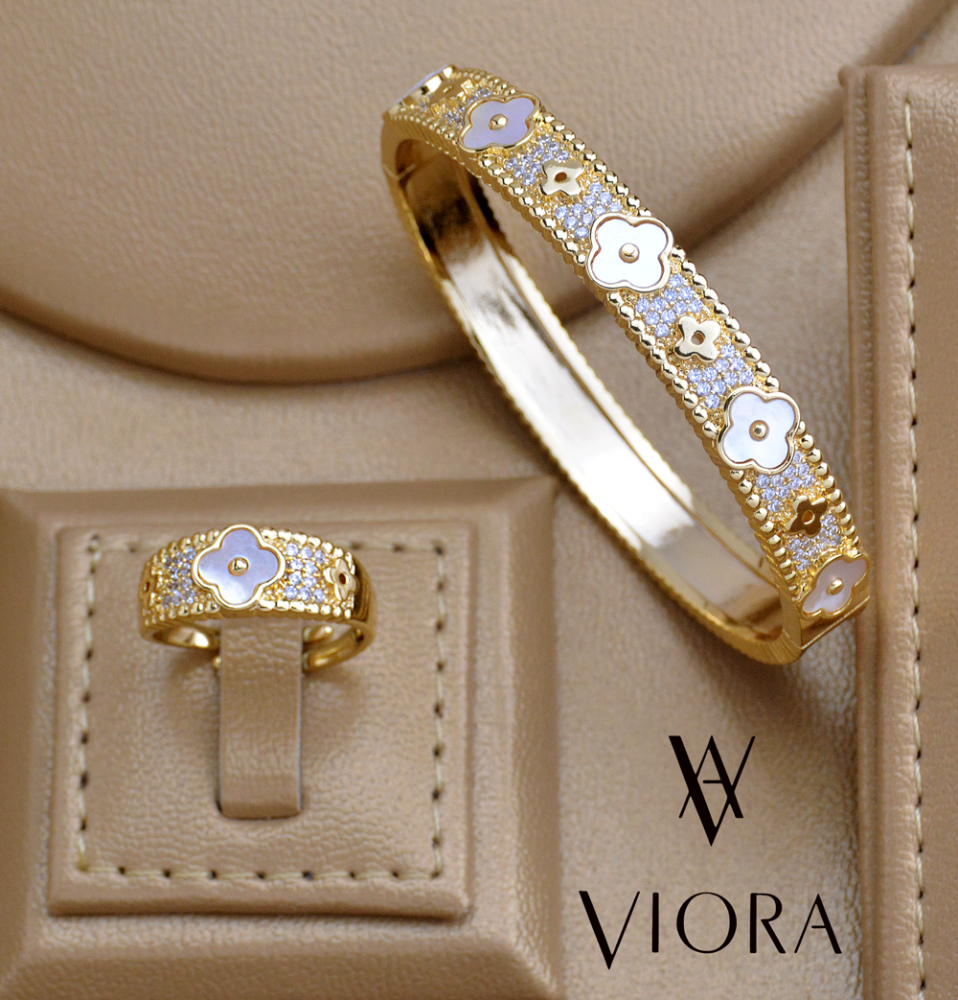 - طقم اسوارة مع خاتم تصميم ألماس مرصعة بالزركون