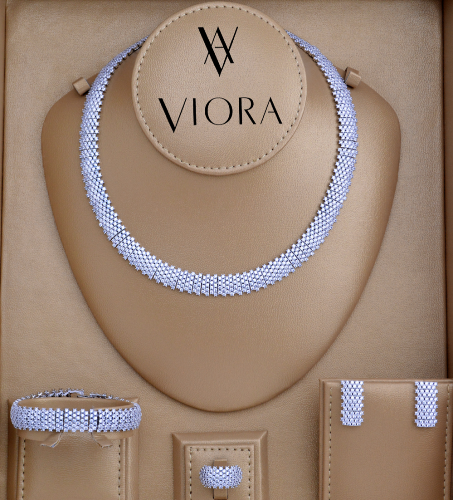- طقم زركون تصميم ألماس مرصع بالاحجار الزركونية