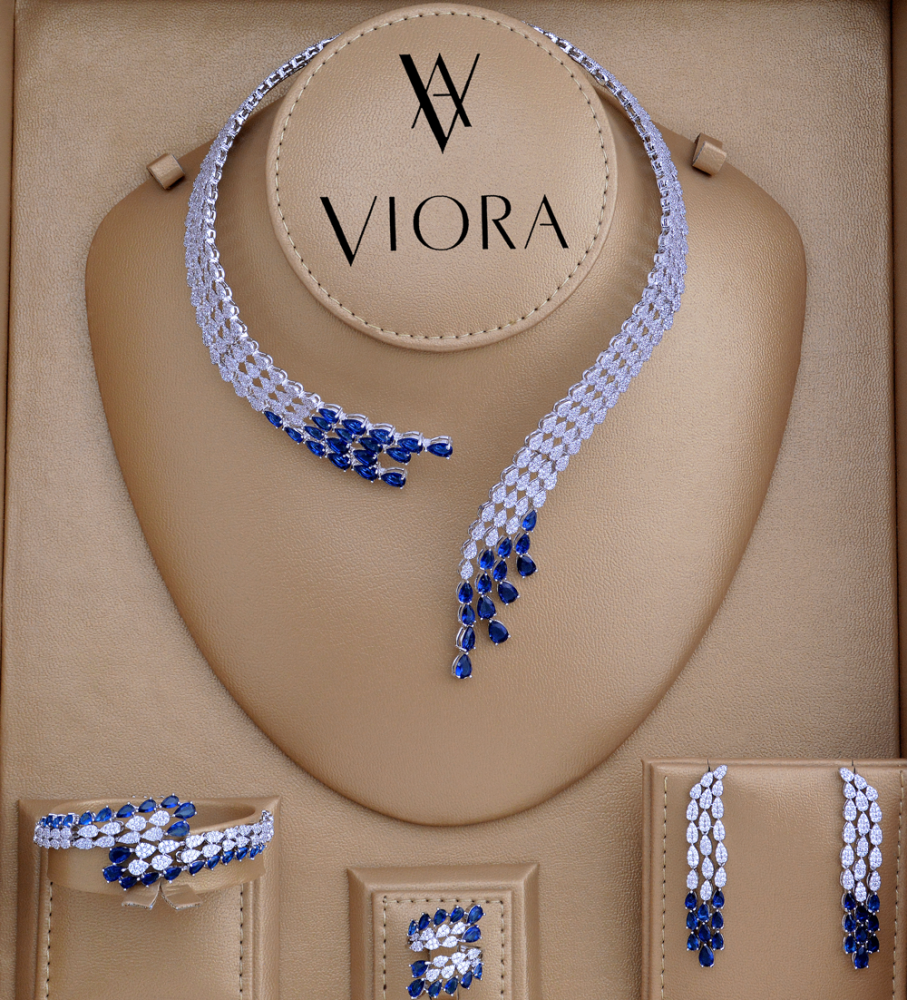 - طقم زركون تصميم ألماس مرصع بالاحجار الزركونية