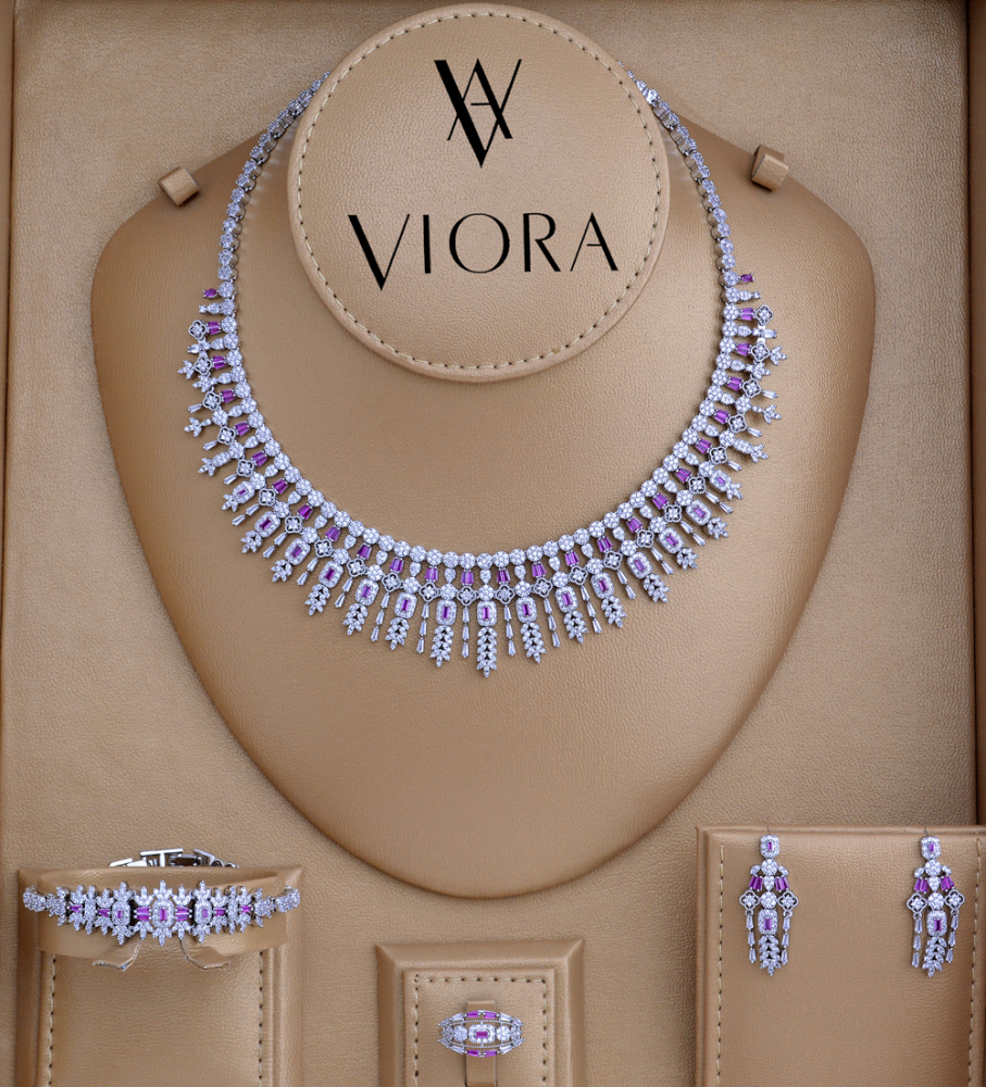 • طقم زركون تصميم ألماس مرصع بالاحجار الزركونية