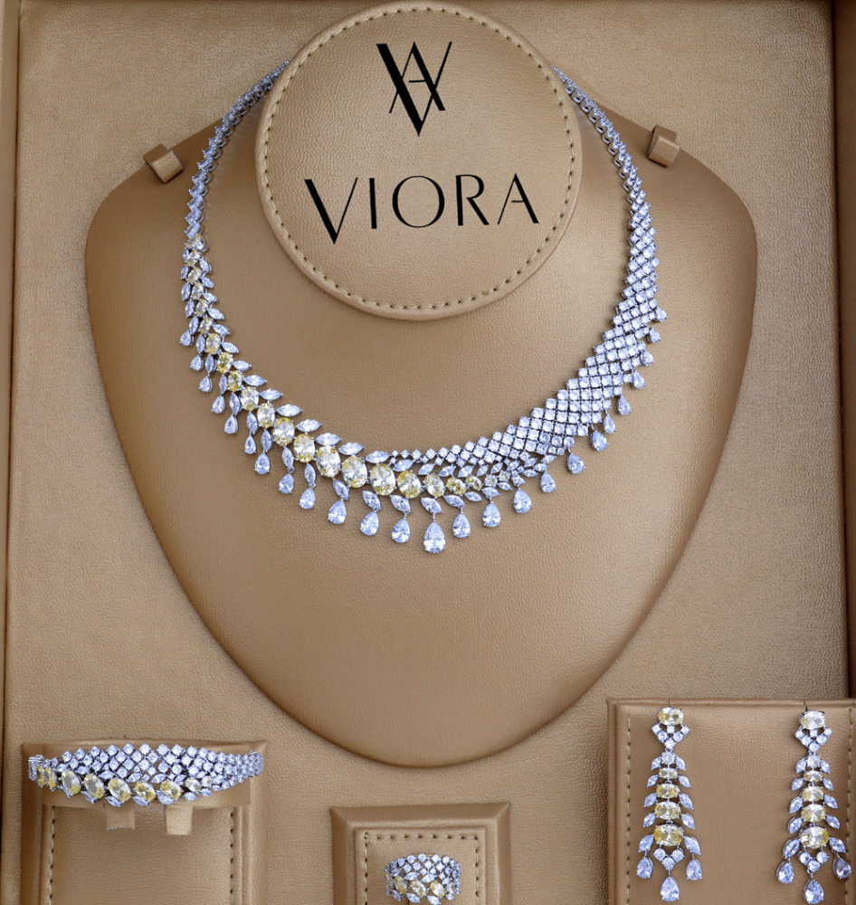- طقم زركون تصميم ألماس مرصع بالاحجار الزركونية