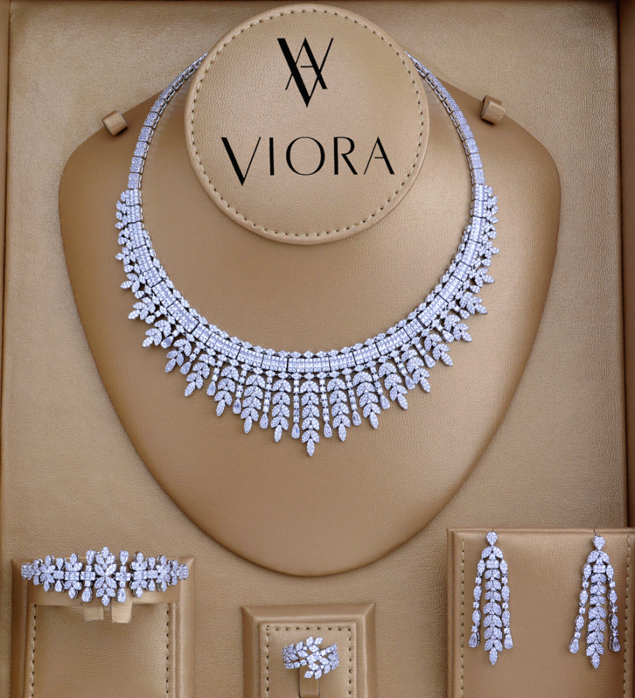 • طقم زركون تصميم ألماس مرصع بالاحجار الزركونية