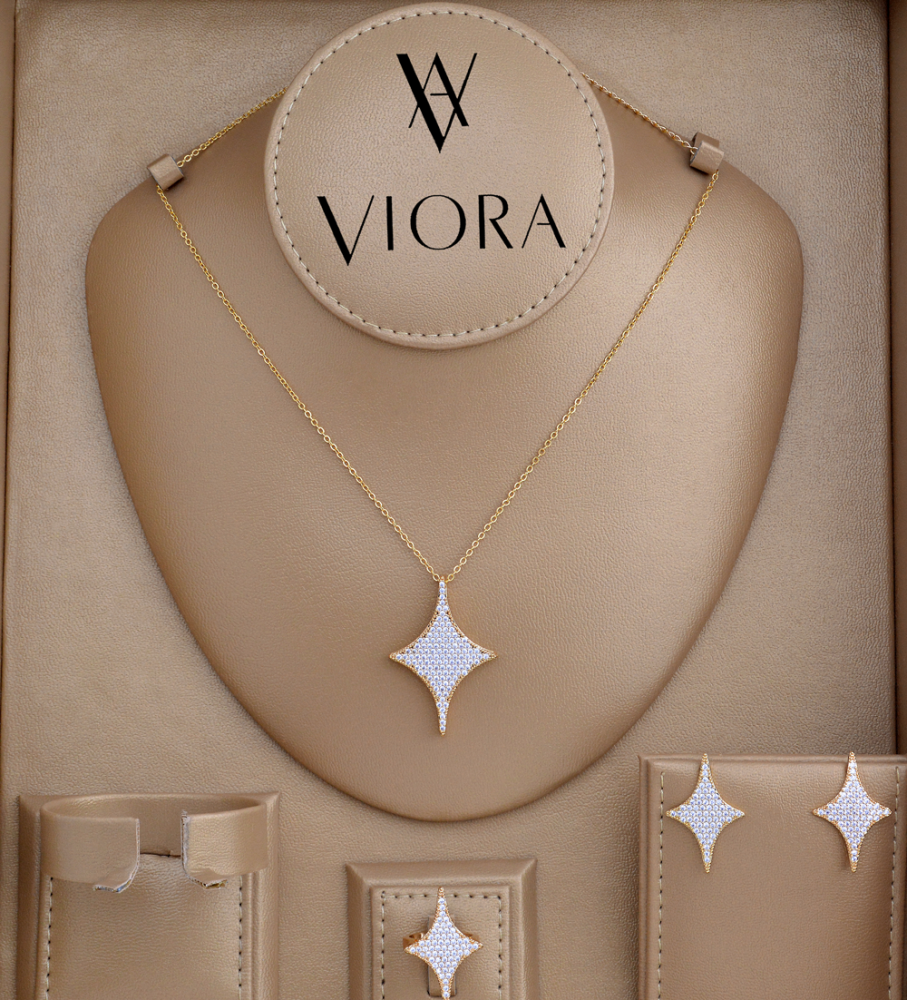 - طقم زركون ناعم تصميم ألماس مرصع بالزركون